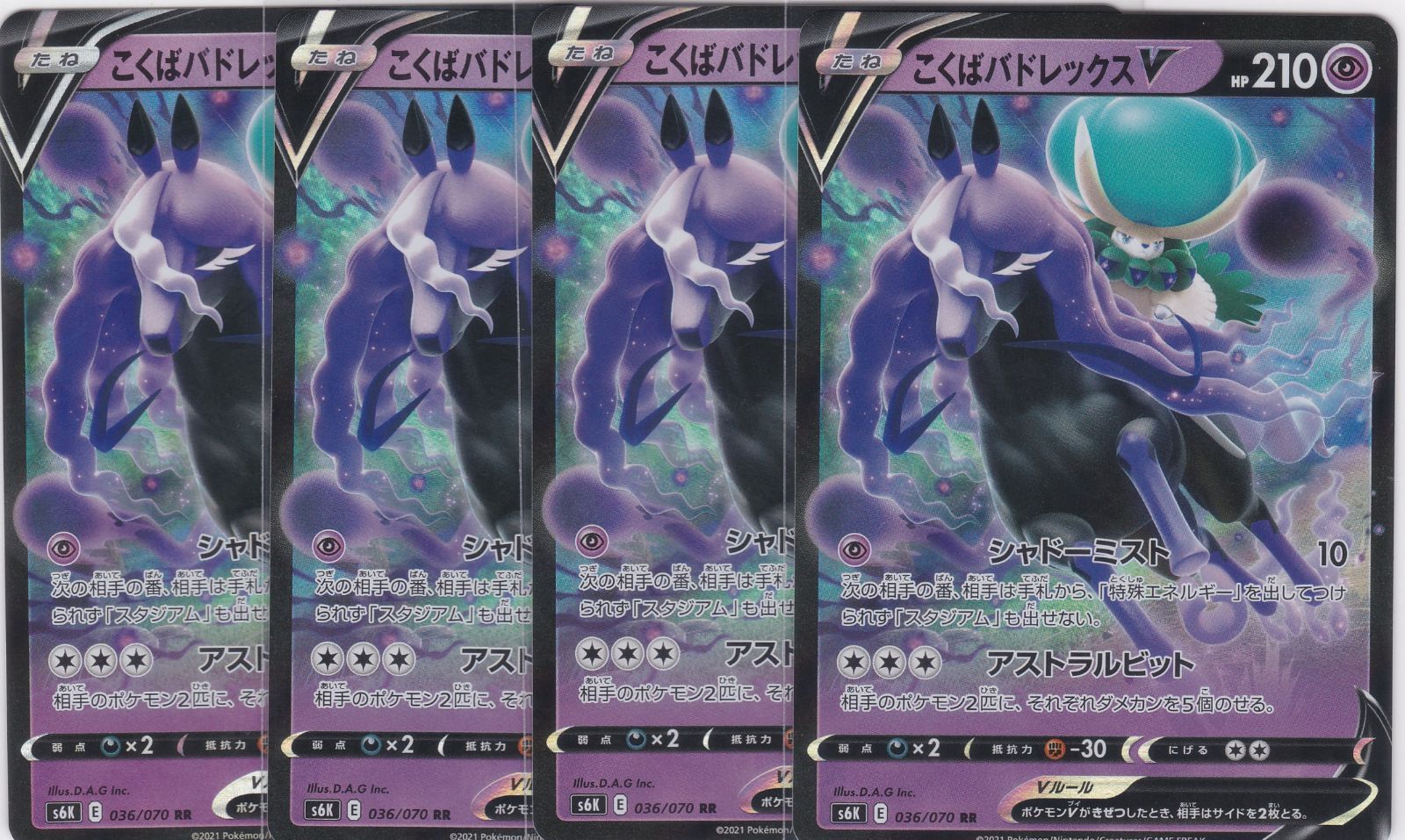| 商品の特徴 | こくばバドレックスV 4枚 RR S6K 漆黒のガイスト ポケモンカード。Pokemon TCG ポケモンカードゲーム ソード&シールド 拡張パック [漆黒。こくばバドレックスVMAX HR S6K 漆黒のガイスト ポケカ ポケモンカード。こくばバドレックスVMAX HR S6K 漆黒のガイスト ポケカ ポケモンカード。種別···複数カード | ||