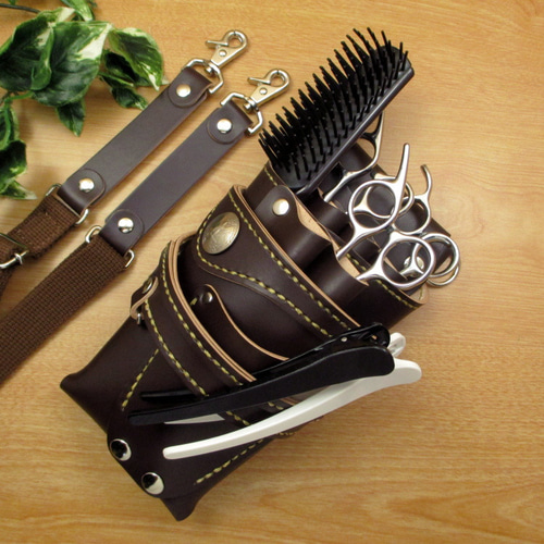 - メイクアップ > メイク道具・化粧小物 > ダークグリーン&焦げ茶 9丁 本革シザーケース SCA-243/CGA 手縫い 本革 5丁差し シザーケース (ダークブラウン) SCA-125/CDB